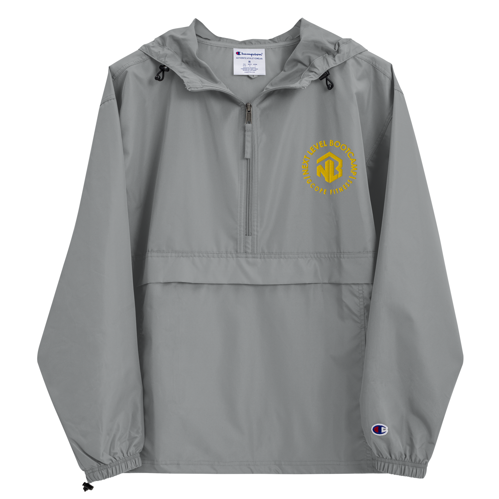 Protect yourself from the elements with this Champion packable jacket. This wind and rain resistant polyester jacket with a detailed embroidery design has a practical hood, front kangaroo pocket, and zipped pouch pocket which you can pull out and use to scrunch the jacket into for convenient storage.